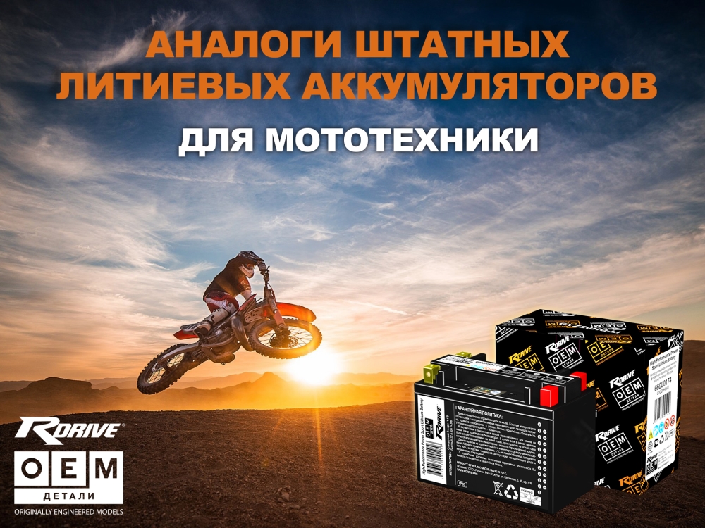 К весеннему сезону 2024 RDrive расширяет ассортимент мотоциклетных аккумуляторов OEM ДЕТАЛИ, произведенных по технологии LiFePO4. Модельный ряд аналогов штатных литиевых АКБ пополнится популярными позициями для мототехники марок KTM, Kawasaki, Honda и Harley Davidson. |