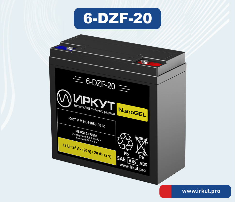 Серия аккумуляторных батарей ИРКУТ для электротранспорта пополнилась новыми моделями: 6-DZF-20, IMTG12-48 и IV6-6. Теперь Энергия Сибири доступна для питания двигателей электровелосипедов, электроскутеров, электроинструмента, инвалидных колясок, уборочных машин, лодочных электромоторов, троллинга, резервного питания, детских электромобилей и прочего электротранспорта. ИРКУТ DZFНеобслуживаемые тяговые герметизированные аккумуляторы глубокого разряда с гелеобразным электролитом, рекомендованные для питания двигателей электровелосипедов, электроскутеров, электроинструмента, инвалидных колясок, уборочных машин и прочего электрооборудования.
